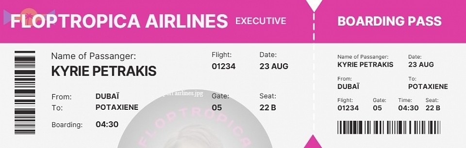 Board Floptropica Airlines! This official airplane ticket is your passport to the vibrant world of Floptropica Island. Fill it in with your personal or fictional information to create your unique identity on the island. A customizable and interactive document that brings your character to life and marks the beginning of your Floptropican adventure. ✈️🌺